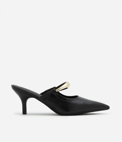 Sapato feminino modelo scarpin com bico fino confeccionado em PU com enfeite bold.