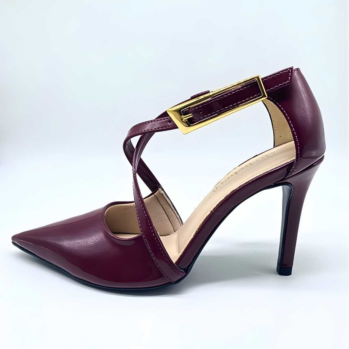 Altura do salto: Aproximadamente 9 cm (salto fino)