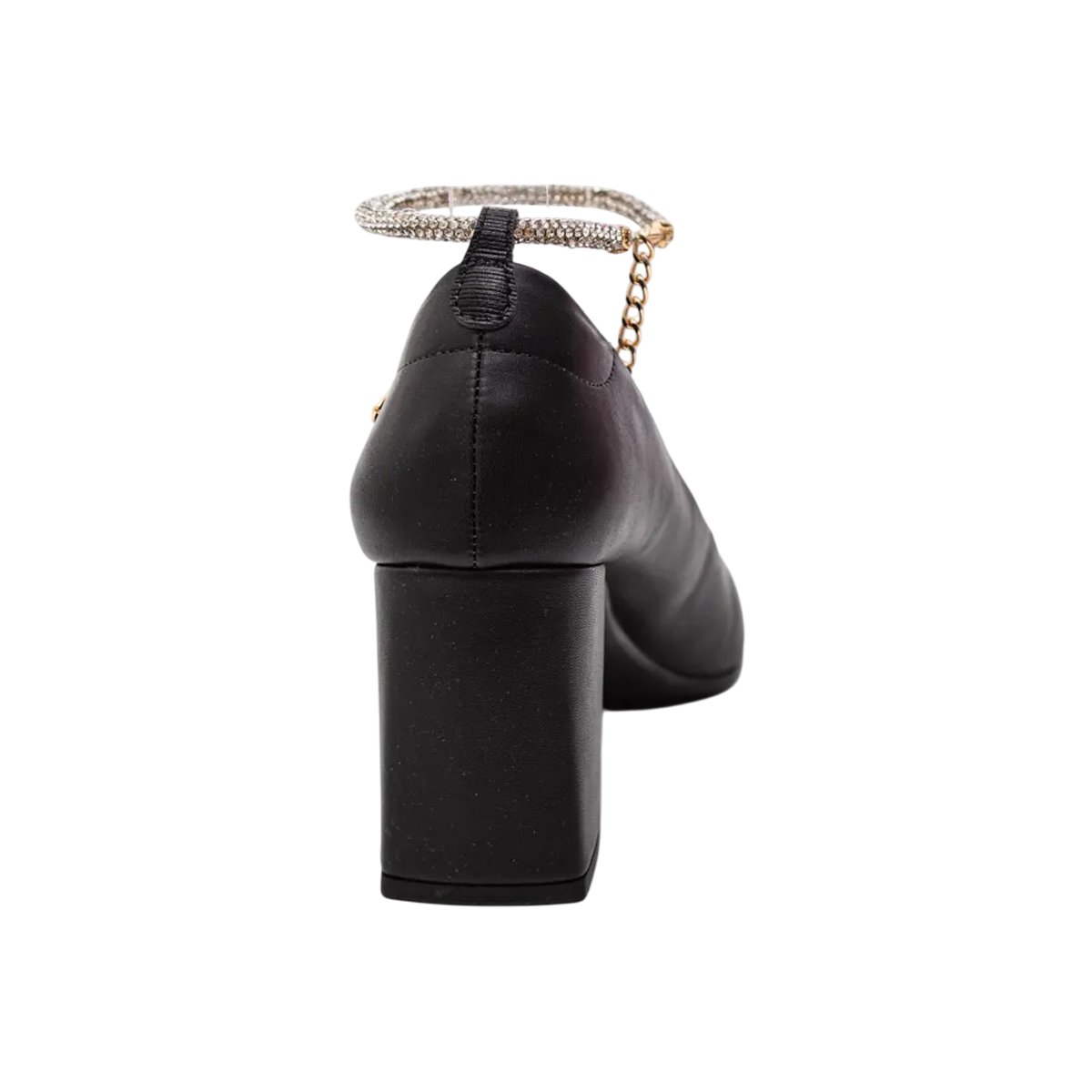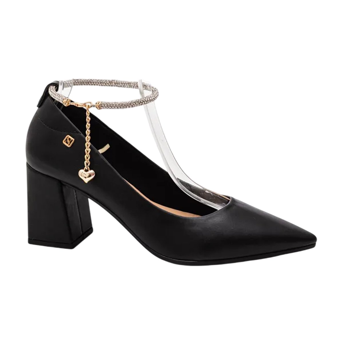 Sapato Scarpin Bico Fino Salto Bloco Tornozeleira em Strass Feminino Santinelli