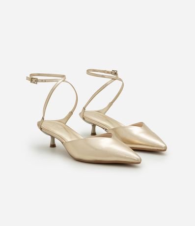 Ref: Sapato feminino em material sintético, peça no modelo scarpin com bico fino, tirar cruzadas e salto fino.