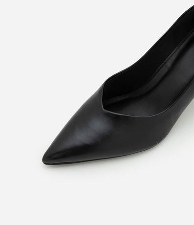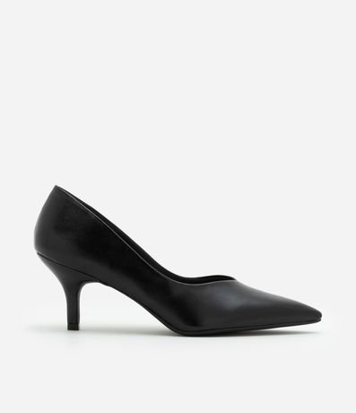 Ref: Sapato scarpin feminino, confeccionado em PU, com salto médio de 6cm e superfície sem estampa.