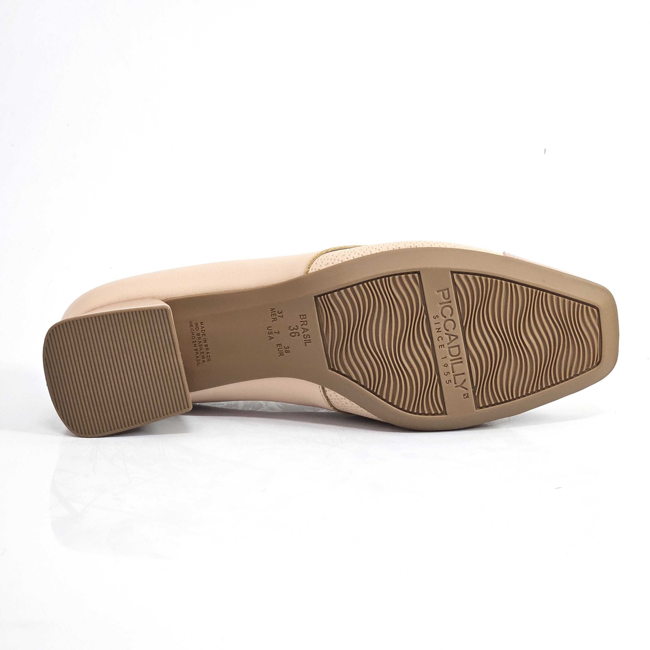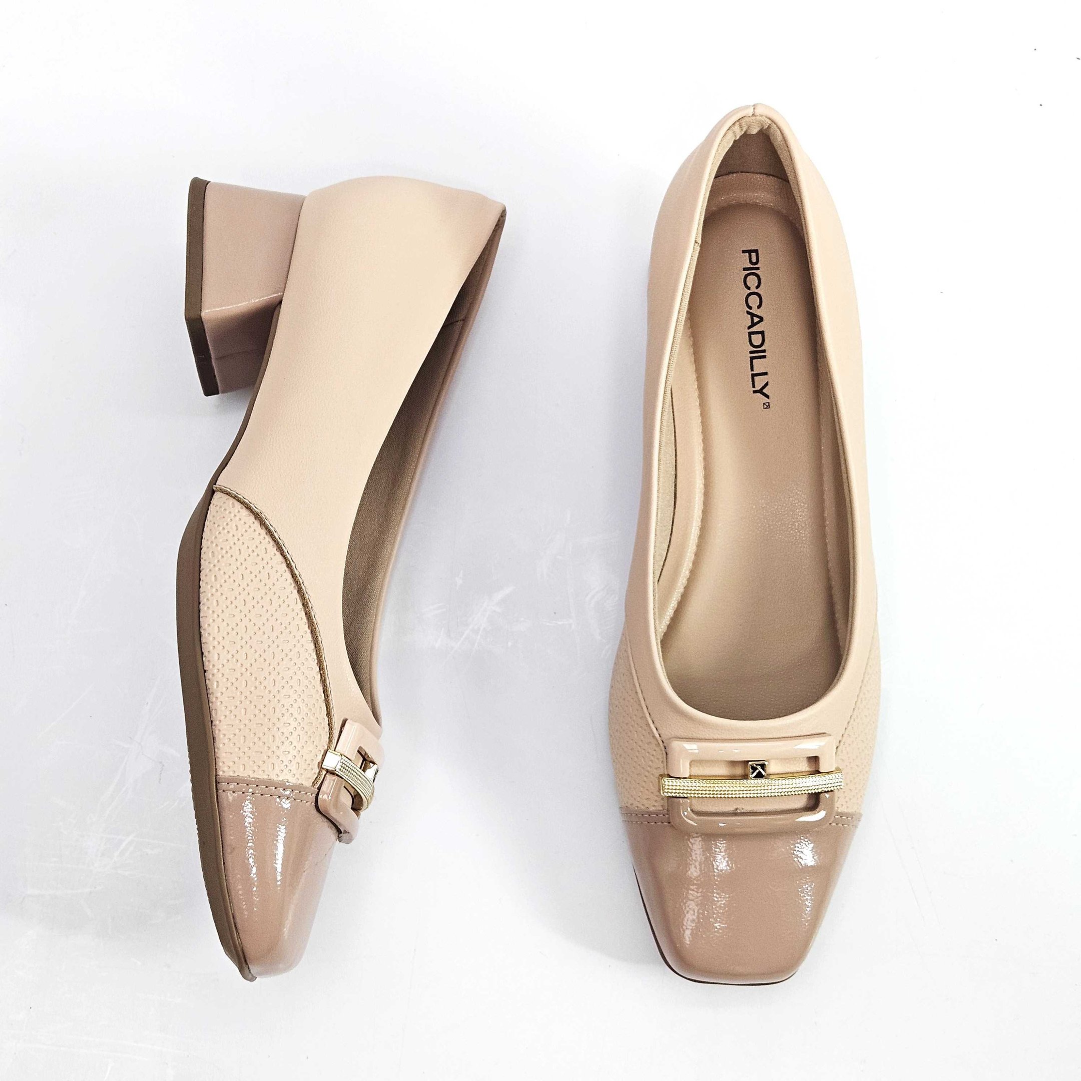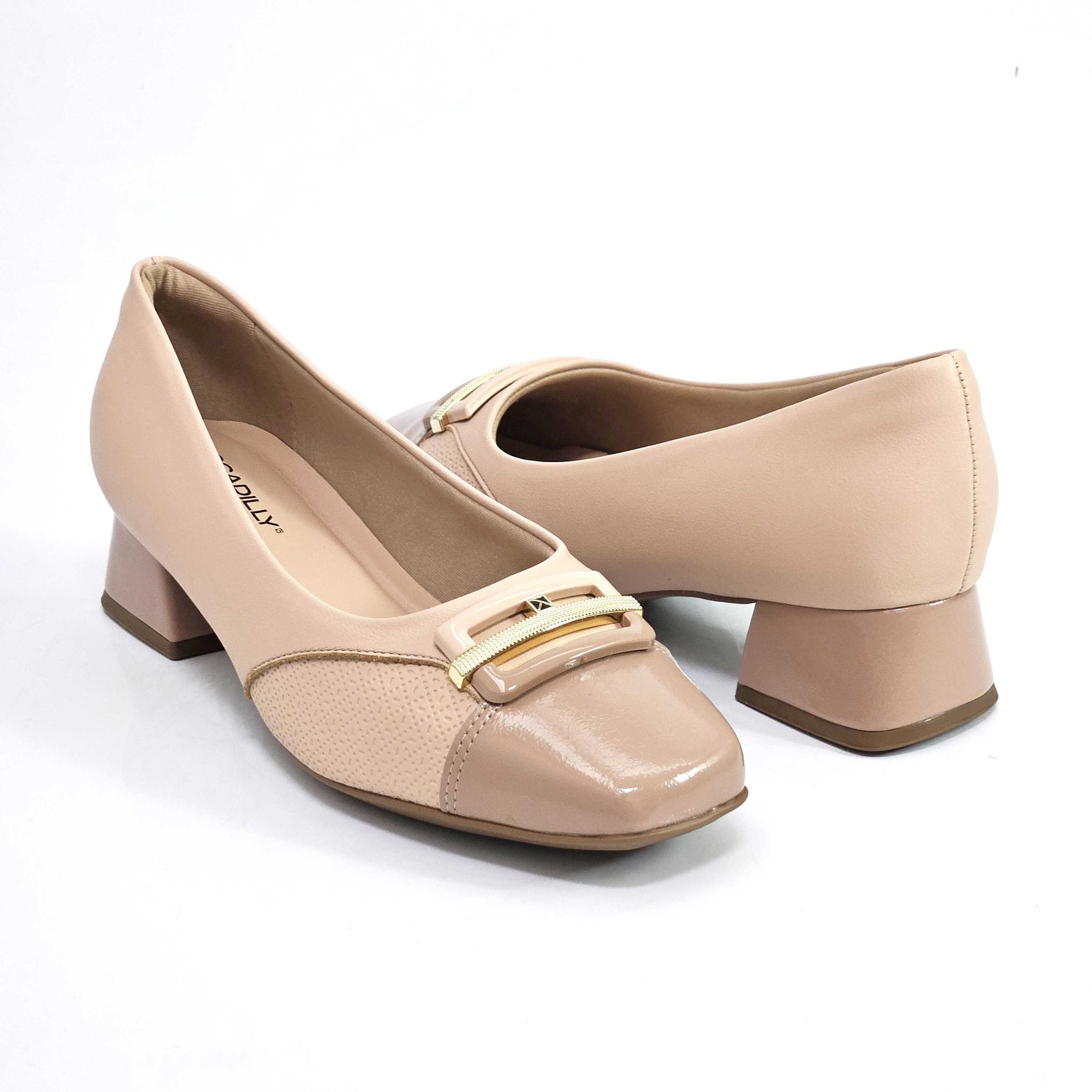 Para um toque de sofisticação discreta e conforto duradouro, apresentamos o Scarpin Piccadilly na suave cor nude. Este modelo, confeccionado em material sintético de alta qualidade, possui um elegante bico quadrado com detalhe dourado na parte frontal, adicionando um toque charmoso ao calçado, além de suportes laterais macios para acomodar confortavelmente a joanete. Salto bloco estável oferecendo bem-estar para o seu dia a dia e solado em borracha antiderrapante, garantindo aderência e segurança ao caminhar. Ele é uma escolha versátil para o trabalho, eventos casuais ou para um toque elegante em qualquer ocasião.Referência: 160097