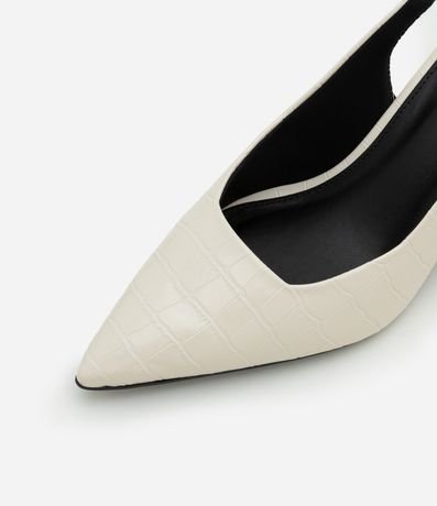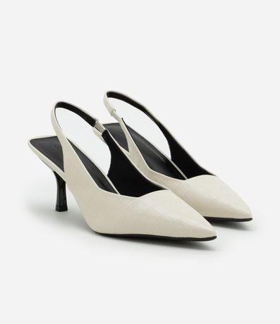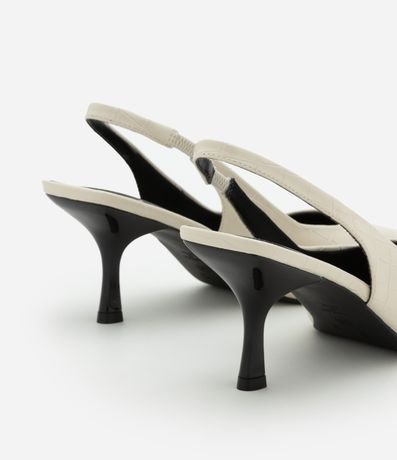 Ref: Sapato scarpin slingback feminino, confeccionado em PU, com bico e salto finos, superfície sem estampa e detalhe com elástico na tira do tornozelo.