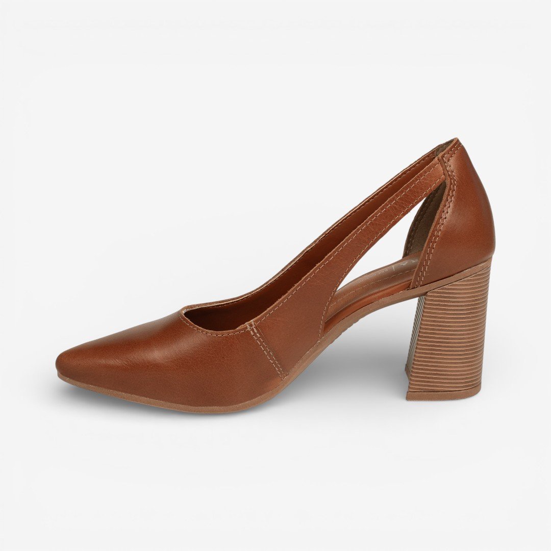 O scarpin Tanara em couro é aquele clássico indispensável com toque atual que eleva qualquer look sem esforço. Com bico fino e abertura lateral, alonga a silhueta e traz elegância imediata, enquanto o salto médio bloco garante estabilidade e conforto para acompanhar a rotina do trabalho ao happy hour. Versátil e sofisticado, combina com alfaiataria, jeans reto, saias midi ou vestidos, perfeito para escritório, eventos e produções urbanas cheias de estilo.