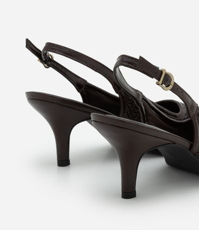 Ref: Sapato feminino slingback confeccionado em PU, trazendo elegância e conforto. Possui cabedal com detalhe, bico fino e fechamento por fivela ajustável na tira traseira. Salto médio de 6 cm garante sofisticação e estabilidade.
