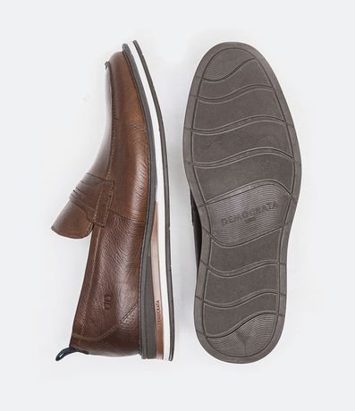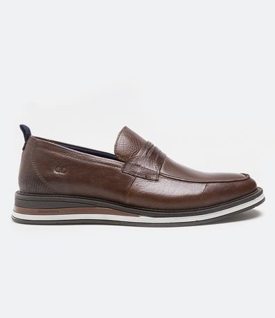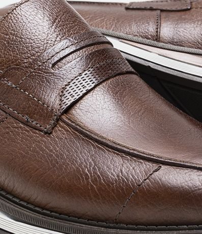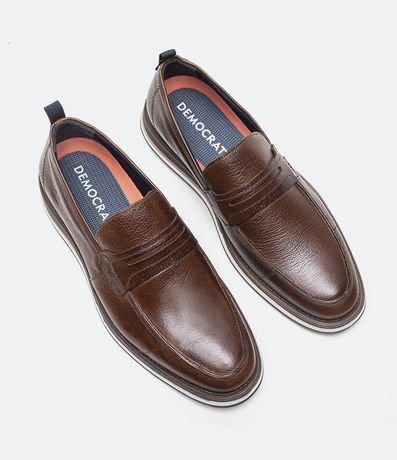 Ref: Sapato tradicional masculino, confeccionado em couro, com detalhe texturizado na parte superior e bico arredondado.