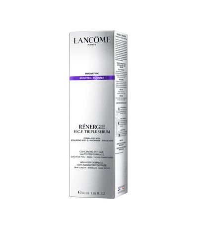 Ref: Sérum facial com tripla ação nos cuidados com a pele. Lancôme Rénergie H.C.F. Triple trata os sinais do envelhecimento camada por camada. Ele ajuda a melhorar a perda de volume, reduzir visivelmente as rugas e uniformizar tons desiguais. Possui uma fórmula projetada para oferecer benefícios antissinais do envelhecimento sem agredir a pele.