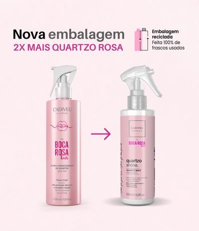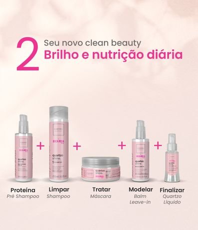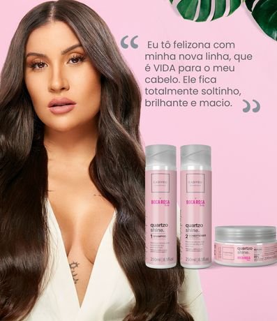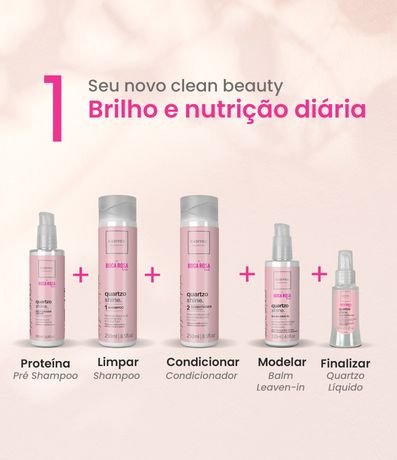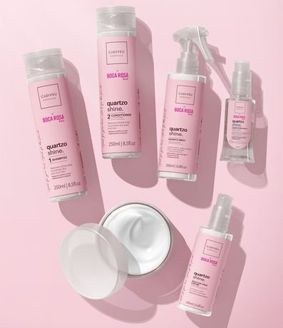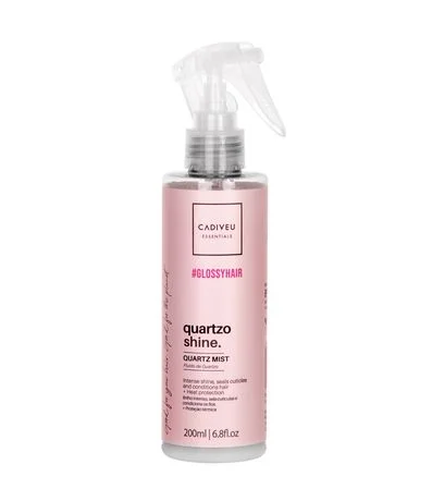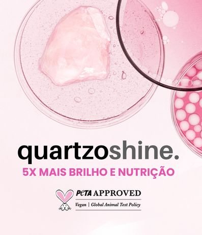 Ref: "Se você é fã de secador, chapinha e babyliss vai amar saber que o Fluído Quartzo Shine protege contra danos térmicos sem acumular resíduos, garante toque aveludado e cabelos brilhantes! Seja qual for o tipo do seu cabelo, você pode usar esse finalizador todos os dias como seu aliado para facilitar o processo da escovação ou prolongar a sensação de cabelos leves o dia todo.