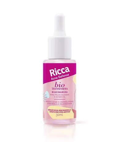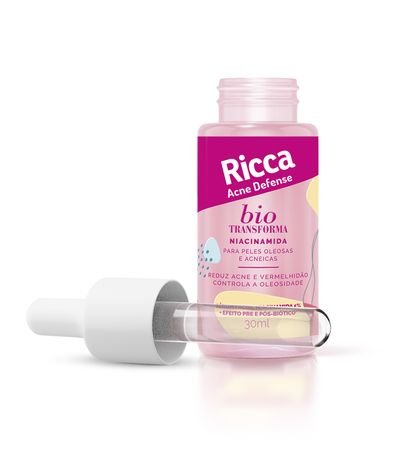 A Niacinamida Ricca Acne Defense Bio Transforma é feito com um complexo de ativos e extratos botânicos. Ideal para garantir o controle da oleosidade, a Niacinamida Ricca Acne Defense Bio Transforma minimiza a acne e ameniza marcas e cicatrizes que surgem depois das espinhas. Além disso, ele possui efeito pré e pós-biótico que auxilia no cuidado com a microbiota da pele e reforça a barreira de proteção cutânea.