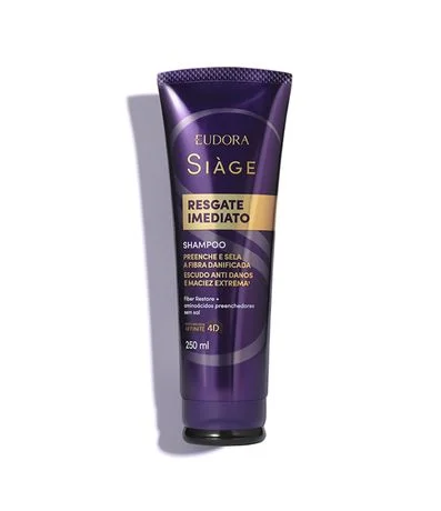 O Shampoo de Eudora Siàge Resgate Imediato limpa e remove as impurezas,de forma gentil, mantendo a camada protetora do fio. A linha Siàge Resgate Imediato chegou para revolucionar o tratamento dos cabelos. Ideal para todos os tipos de cabelo, sua fórmula foi desenvolvida para recuperar imediatamente os com danos que parecem não ter solução. Com Fiber Restore, que age desde o córtex capilar penetrando profundamente e criando pontes que suportam a estrutura da queratina interna, e Aminoácidos preenchedores, que preenchem a fibra capilar danicada, o uso da linha completa reduz a porosidade dos fios, devolvendo maciez extrema e garantindo cutículas totalmente seladas. Siàge. Tecnologia para o seu melhor cabelo, todos os dias. Nenhum produto Eudora é testado em animais, ou seja, este item possui selo Cruelty Free.