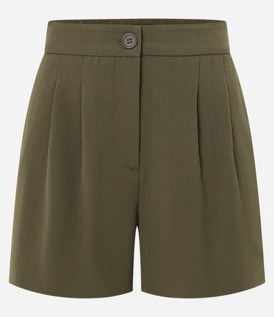 Ref: Short confeccionado em poliéster e viscose, com corte alfaiatado e pregas frontais. A peça conta com fechamento frontal tradicional com botão e zíper.