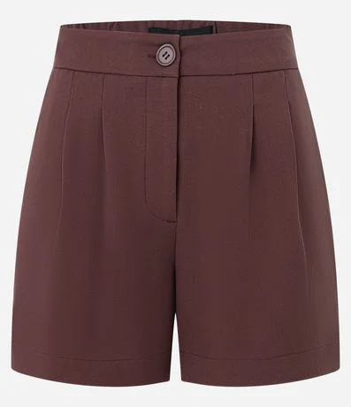 Ref: Short confeccionado em poliéster e viscose, com corte alfaiatado e pregas frontais. A peça conta com fechamento frontal tradicional com botão e zíper.