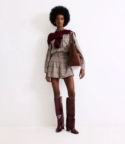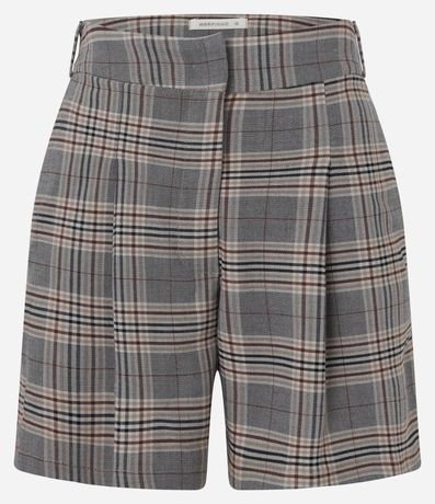 Short Alfaiatado com Pregas e Estampa Xadrez