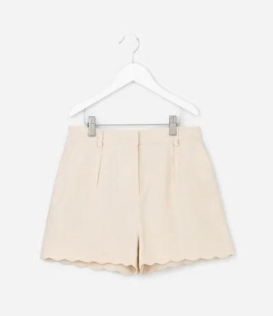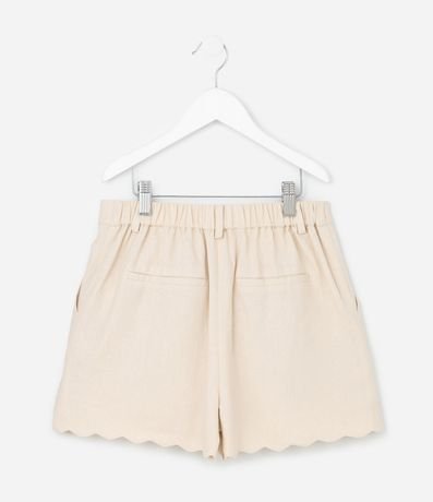 Ref: Short alfaiatado, confeccionado em viscolinho, com passantes e elástico no ós, fechamento por colchetes e zíper, pregas e bolsos.