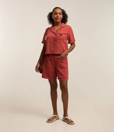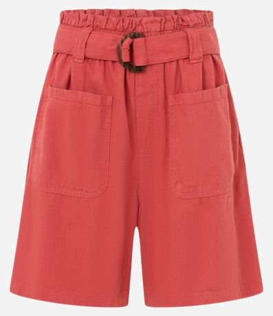 Short Baggy Cintura Média em Sarja com Cinto Afivelado
