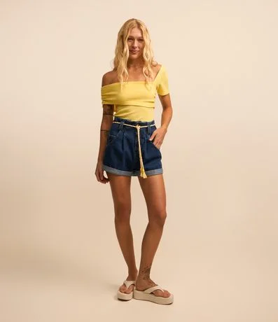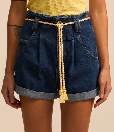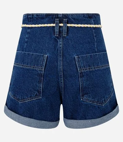 Ref: Short feminino no modelo baggy confeccionado em jeans, cós com passante e cinto corão contrastante, bolsos e bainha na barra.