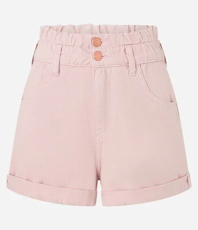 Short baggy com cintura alta, cós duplo com elástico, bolsos, confeccionado em sarja e com barra dobradinha.