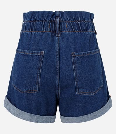 Short baggy em jeans, com cós duplo de elástico, bolsos frente e costas e barra dobradinha.