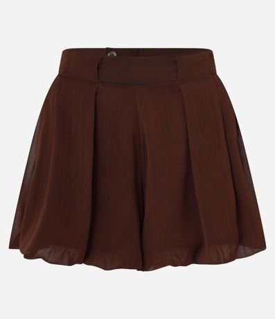 Ref: Short feminino de modelinho balonê, confeccionado em chiffon, com fechamento por zíper e pregas.
