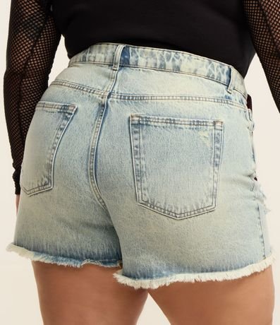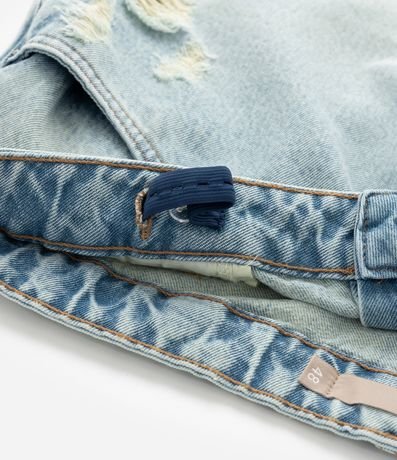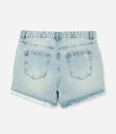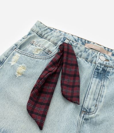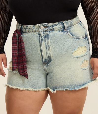 Ref: Shortinho jeans modelo boyfriend confeccionado com algodão mais sustentável. O short tem ajuste elástico no interior do cós; passantes na cintura; puídos e rasgos; bolsos frontais e traseiros; e lencinho xadrez no passante.