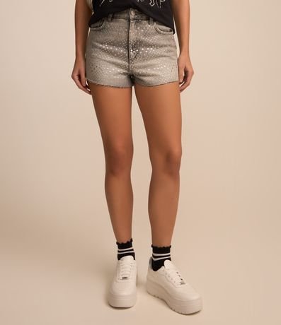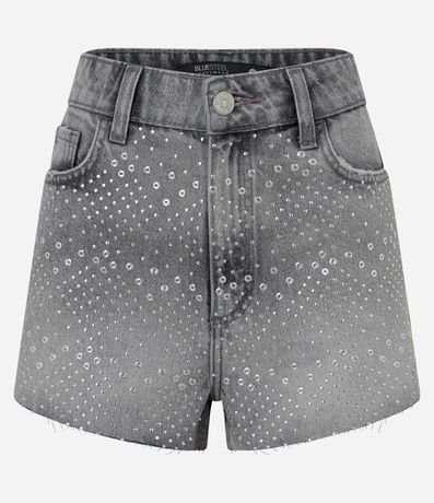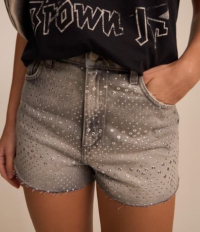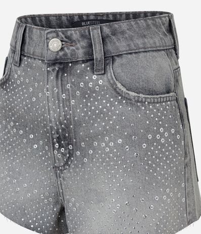 Short Cintura Alta em Jeans com Ilhós Aplicados