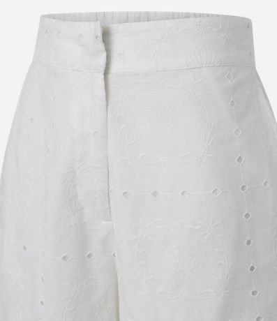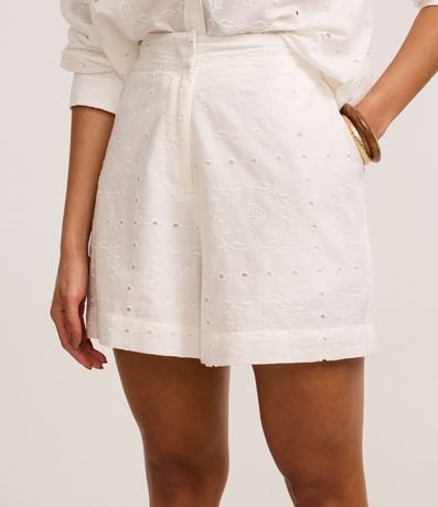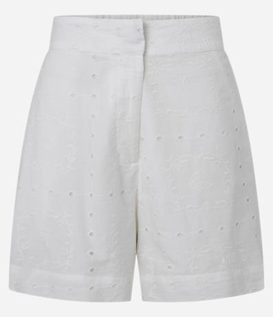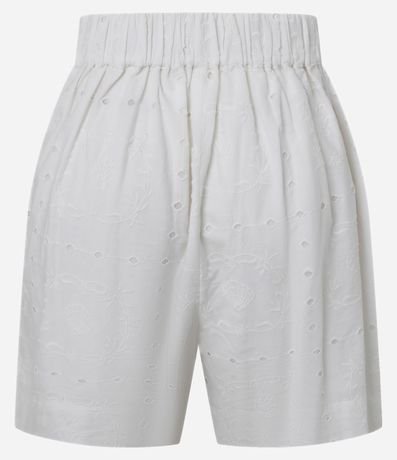 Ref: Short de cintura alta, confeccionado em laise, com elástico no cós, fechamento tradicional e bordados com furos. Este produto possui algodão certificado em sua composição, sendo ambientalmente mais responsável.