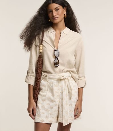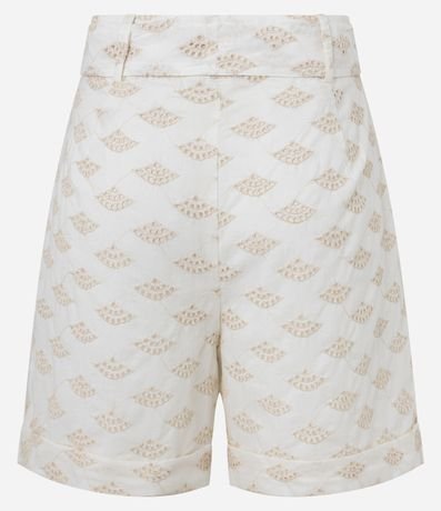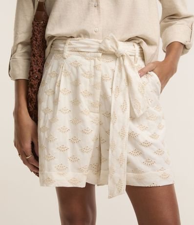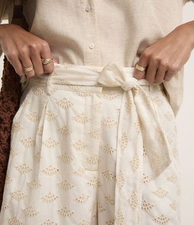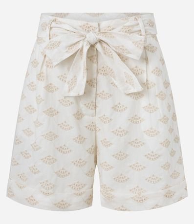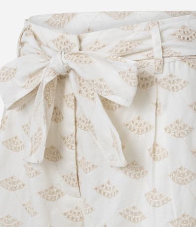 Short Cintura Alta em Laise com Cinto Laço e Leques Bordados