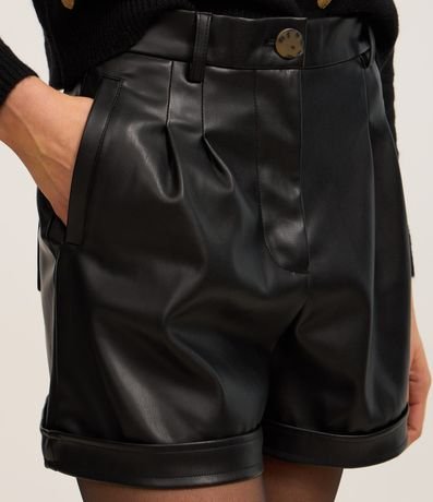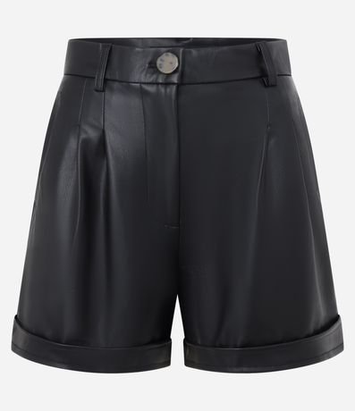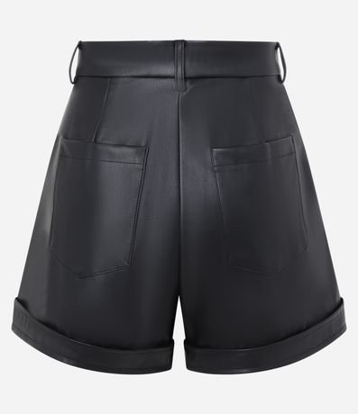 Short Cintura Alta em PU Barra Dobrada