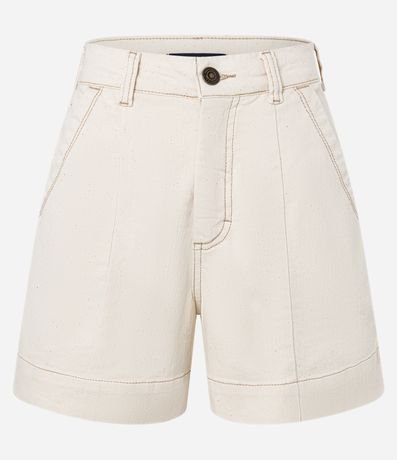 Ref: Short cintura alta em sarja com bolsos e costura aparente.