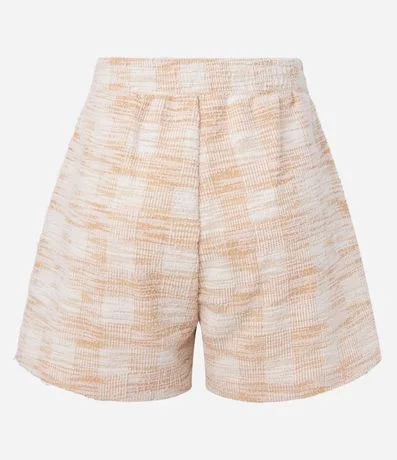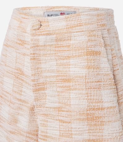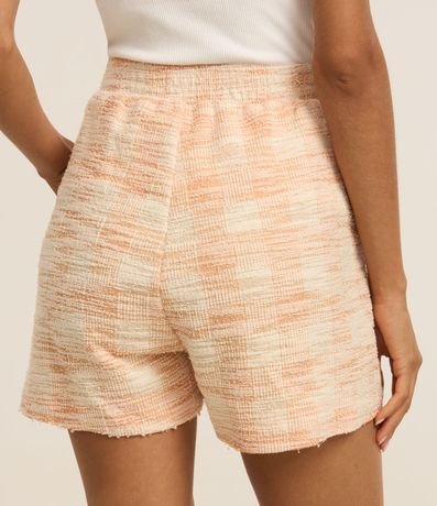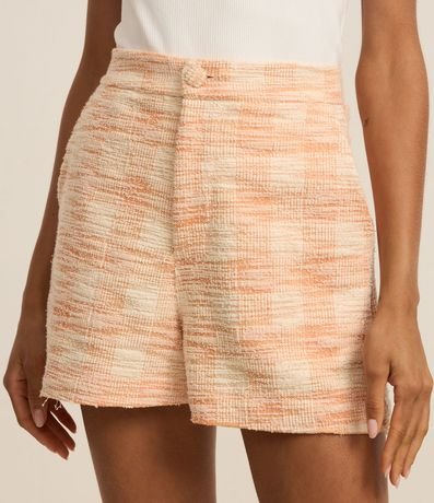 Short Cintura Alta em Tweed Xadrez com Barra a Fio