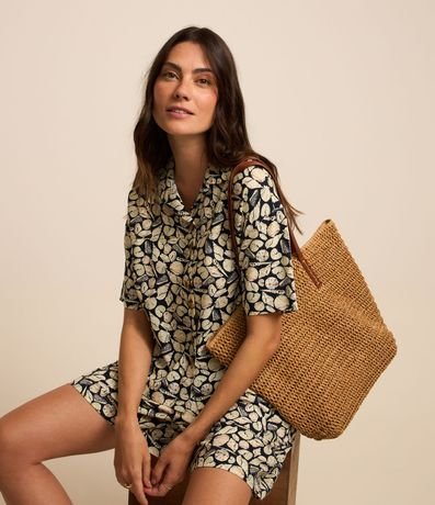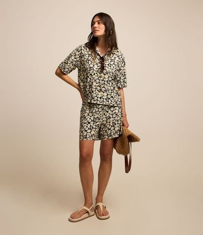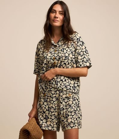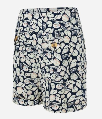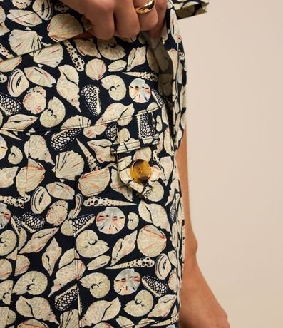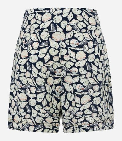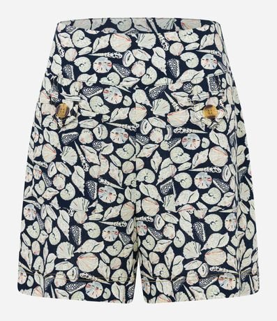 Ref: Short feminino, cintura alta, confeccionado em viscolinho, cós alfaiatado, bolsos frontais com fechamento por botões, detalhamento em pesponto. Peça contém estampa de conchas do mar.