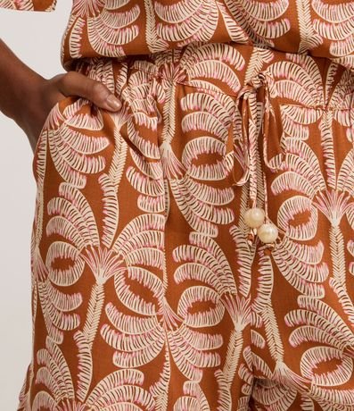 Ref: Short de cintura alta, confeccionado em viscose, com elástico e amarração no cós, além de estampa de coqueiros. Este produto possui viscose certificada em sua composição, sendo ambientalmente mais responsável.