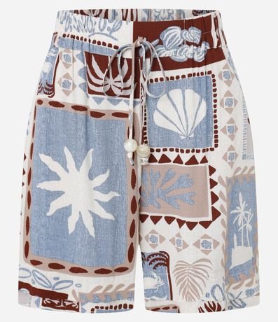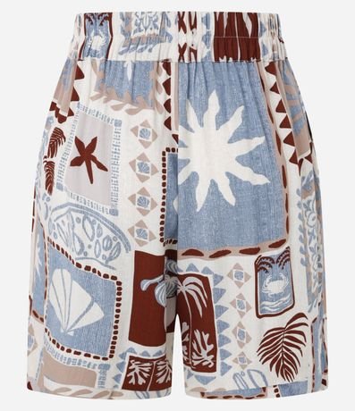 Ref: Short reto de cintura alta, confeccionado em viscose, com e elástico e amarração no cós, além de estampa com quadros om ícones de temática tropical. Este produto possui viscose certificada em sua composição, sendo ambientalmente mais responsável.