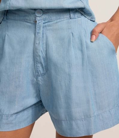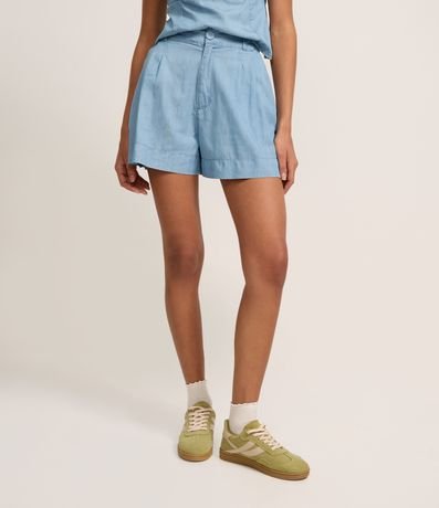 Ref: Short de cintura média, confeccionado em jeans, com passantes no cós alfaiatado, com fechamento tradicional, pregas e bolsos. Este produto possui material mais sustentável em sua composição, sendo ambientalmente mais responsável.