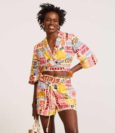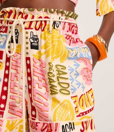 Ref: Short clochard confeccionado em vicolinho com viscose certificada mais sustentável. Possui cordão no cós para ajuste e estampa tropical.