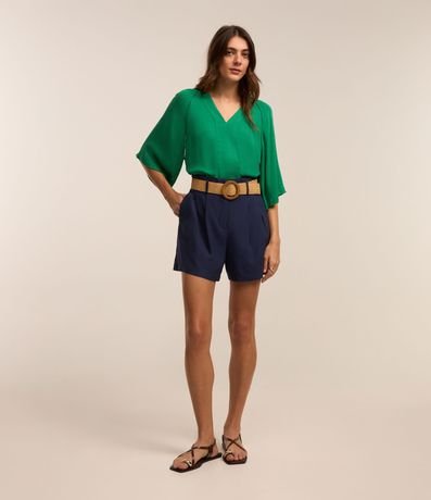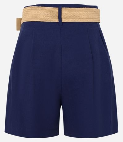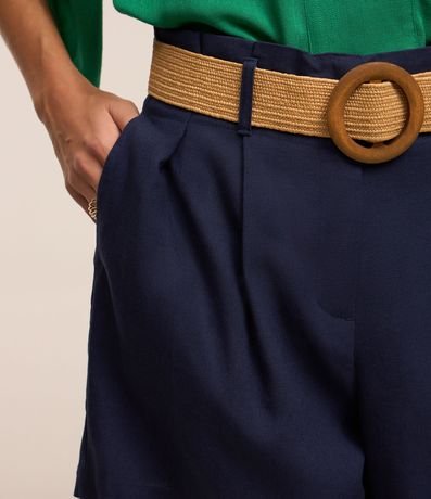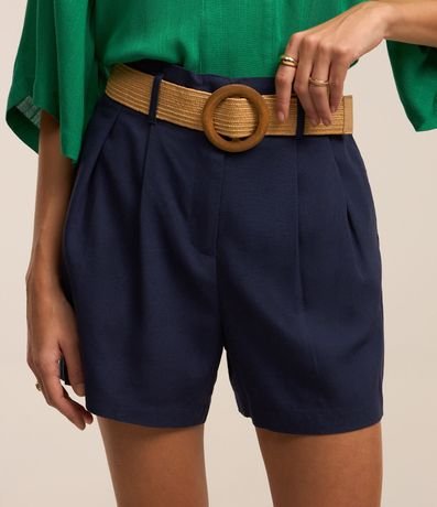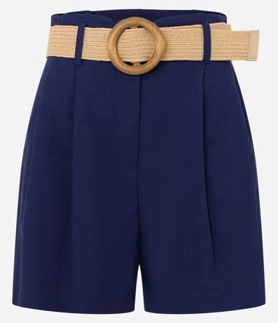 Ref: Short clochard feminino, confeccionado em viscolinho, com passantes no cós, cinto fivela de madeira e pregas.