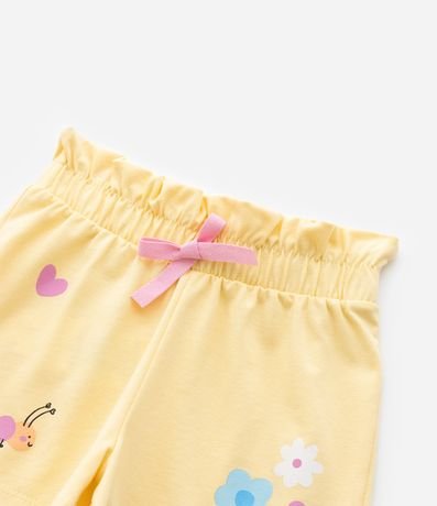Ref: Shortinho infantil de modelinho clochard, com cós elástico, lacinho aplicado e estampa de centopeia e florzinhas.
