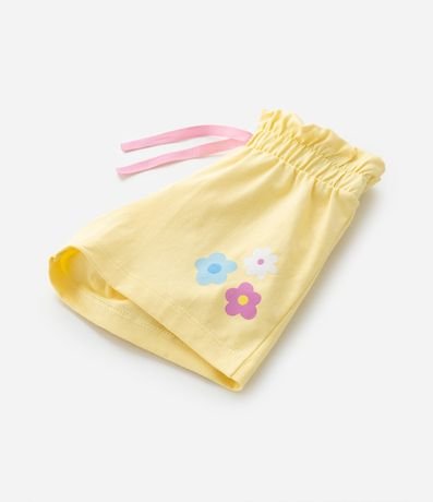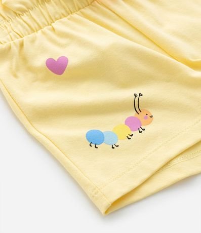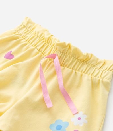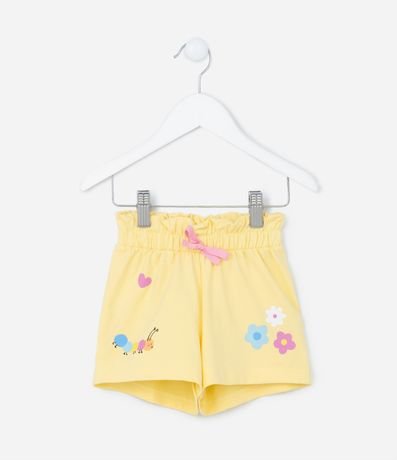 Ref: Short infantil clochard com cós elástico, lacinho aplicado e estampa super fofa de florzinha e centopeias!