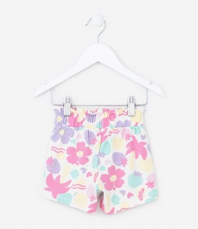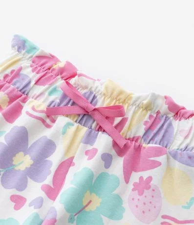 Ref: Short infantil clochard, com cós elástico e lacinho aplicado. Possui estampa floral.