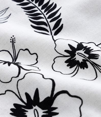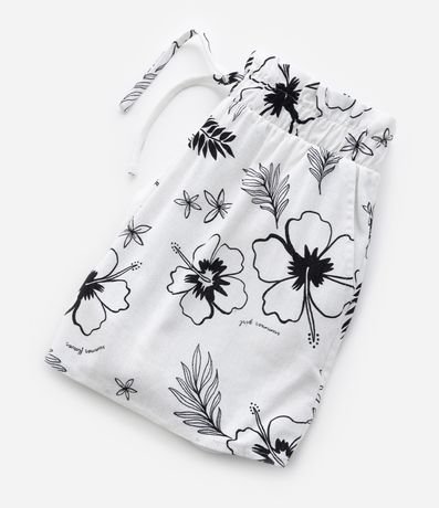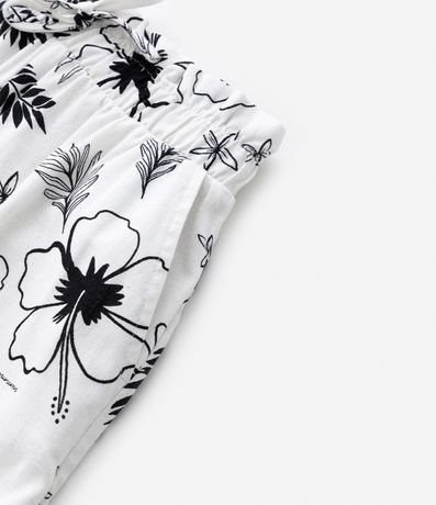 Short clochard com cós elástico e cordão para ajuste, soltinho confeccionado em viscose e com estampa tropical de flores e folhagens.