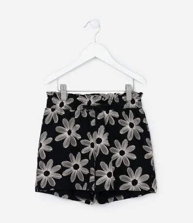 Ref: Short infantil clochard confeccionado em algodão mais sustentável. Possui cós elástico, lacinho e estampa floral.