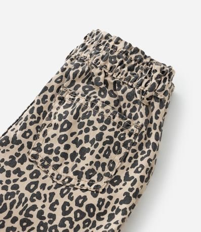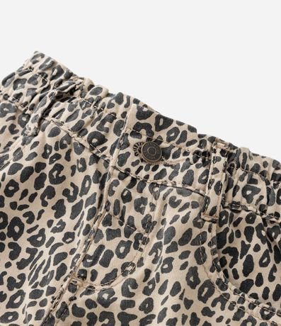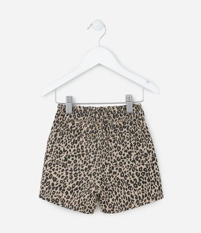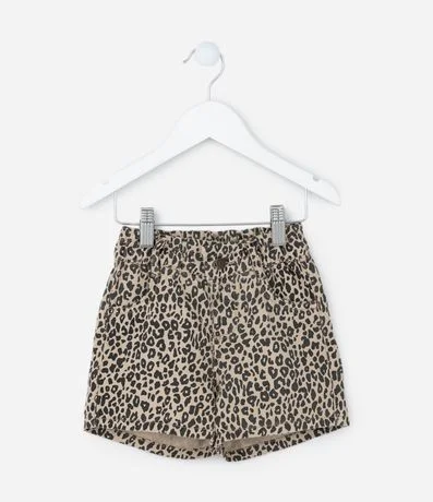 Ref: Shortinho infantil confeccionado em jeans, de modelinho clochard com cintura elástica. Possui bolsos e estampa de oncinha.