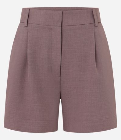 Ref: Short feminino de corte alfaiatado, com cintura alta, passantes e preguinhas frontais.