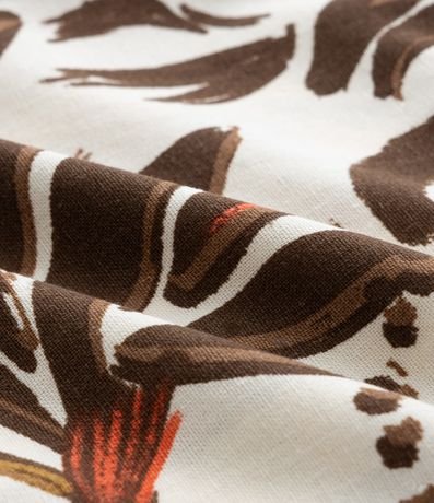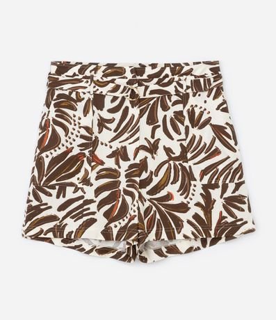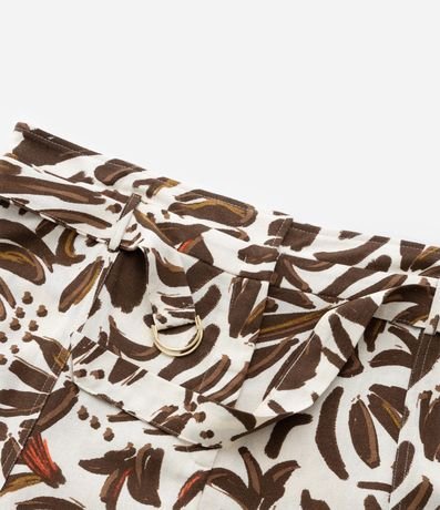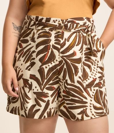 Ref: Short plus size confeccionado em viscose mais sustentável e linho e estampado de folhagem. A bermuda tem bolsos, passantes na cintura e cinto faixa no mesmo tecido da peça.