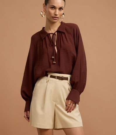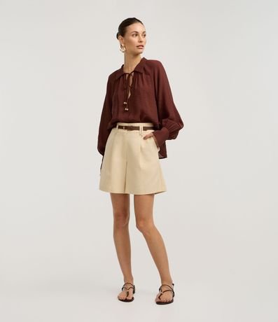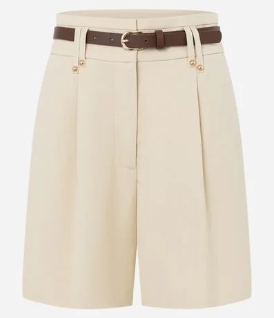 Ref: Short de cintura alta, confeccionado em tecido plano, com passantes no cós, fechamento tradicional e pregas. Inclui cinto fino de material sintético.