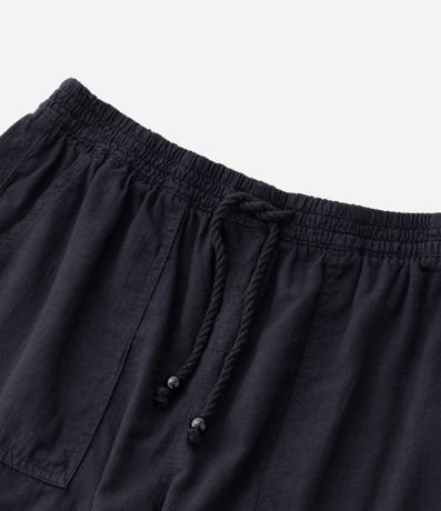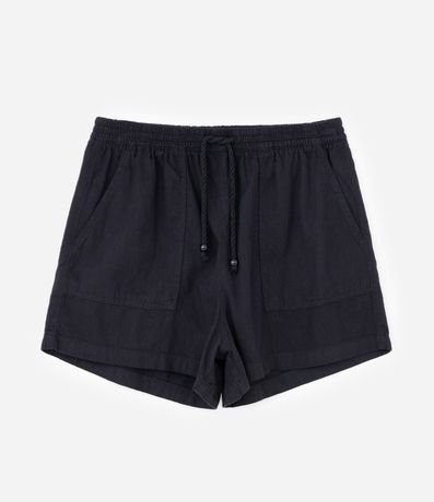 Short comfy em sarja, com cós elástico, amarração e bolsos.
