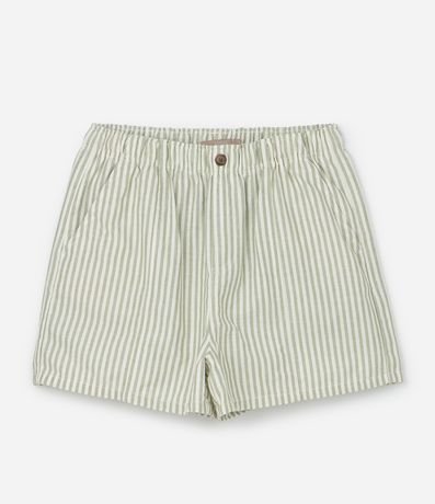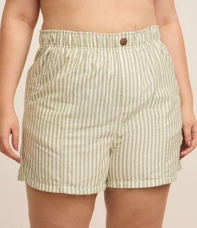 Short Comfy em Sarja Listrada com Cós Elástico Curve & Plus Size
