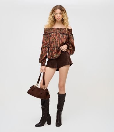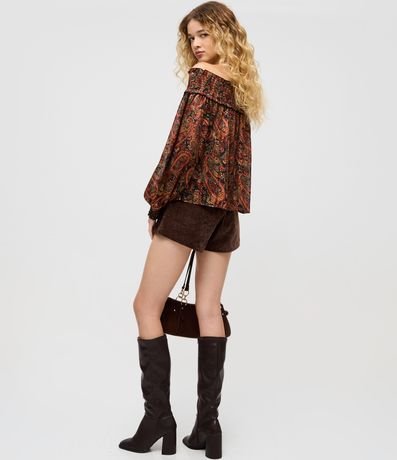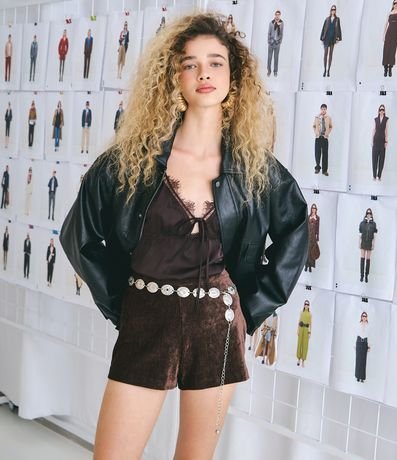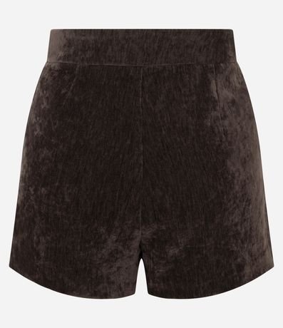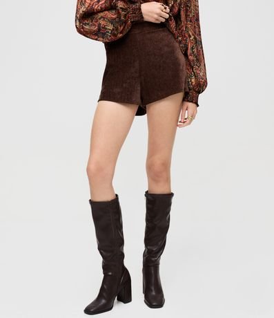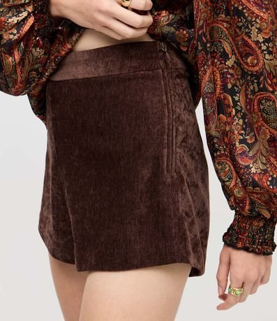 Short feminino em veludo, com cós reto e estrutura levemente ajustada ao corpo. Possui fechamento lateral embutido, toque aveludado, caimento firme e acabamento limpo.