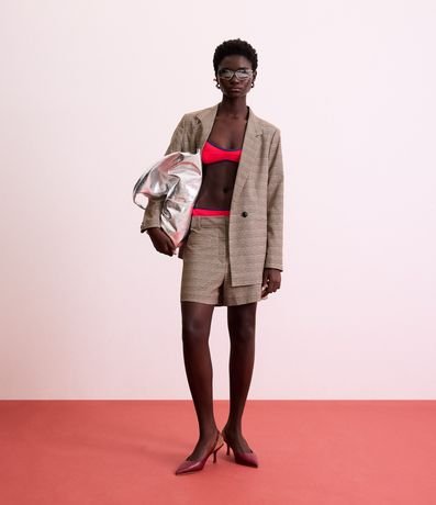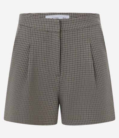 Ref: Short curto em alfaiataria com pregas, confeccionado em viscose e estampa xadrez.