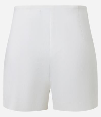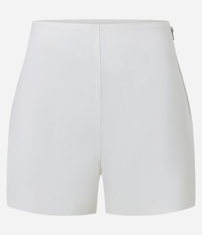 Short curto feminino confeccionado em bengaline, com cós reto e sem estampa. Possui fechamento lateral com zíper tratorado.